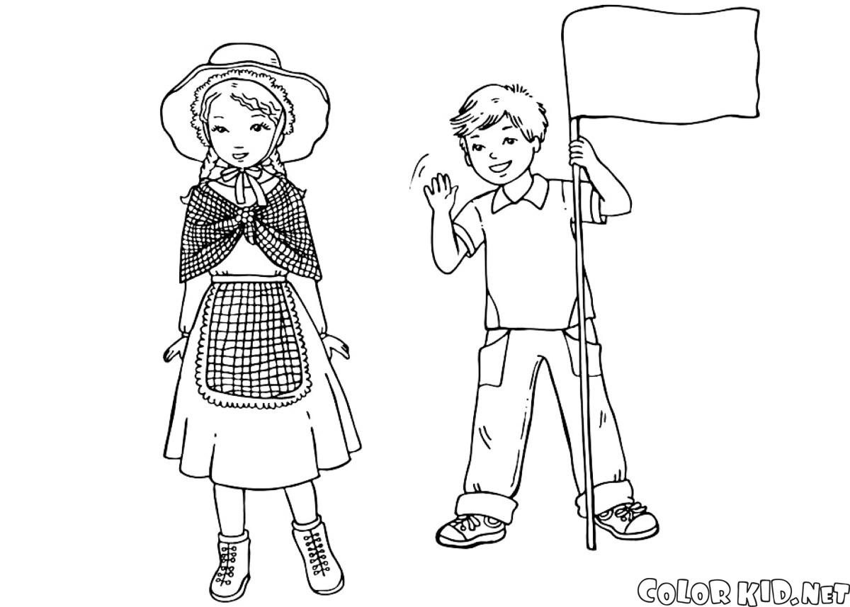 Dans Découvrir le monde vous trouverez des pages à colorier de Enfants en costume traditionnel, ainsi que d'autres pages.