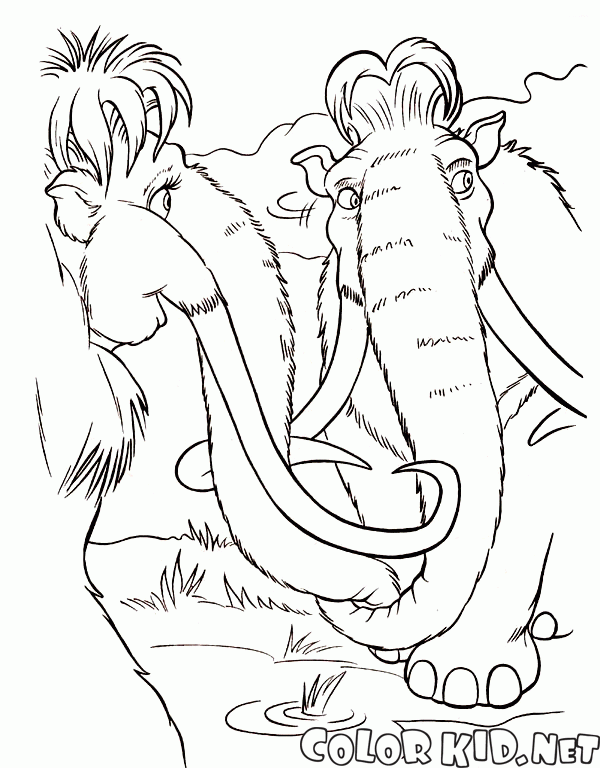Coloriage - Les mammouths Manny et Ellie