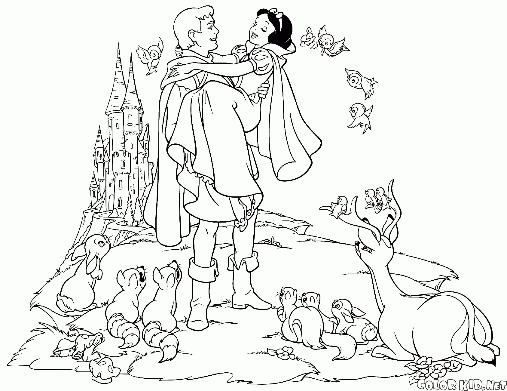 Vous pouvez télécharger et imprimer les pages à colorier pour les enfants Prince et Blanche Neige se marient depuis notre site Web.
