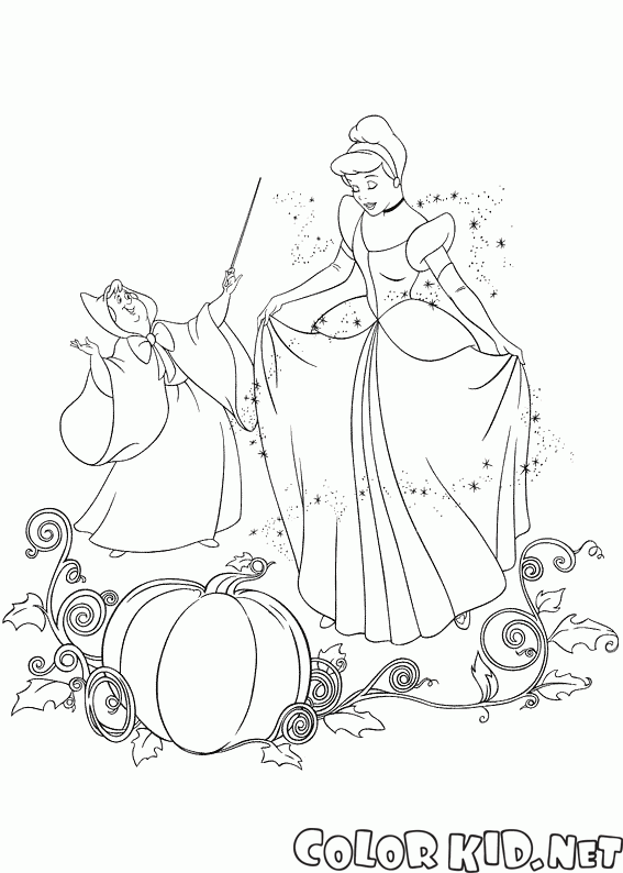 Coloriage - Fairy Godmother et Cendrillon