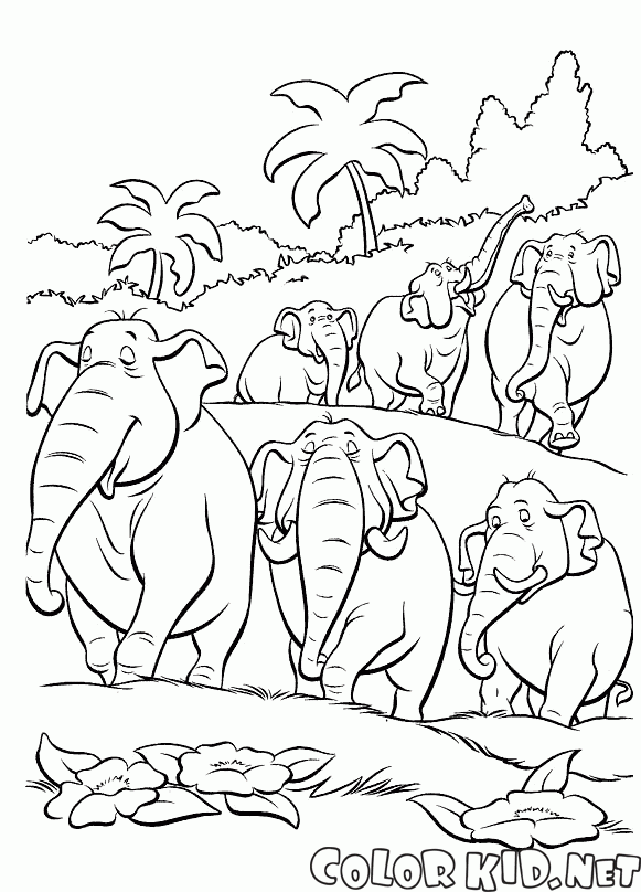 Coloriage - Un troupeau déléphants
