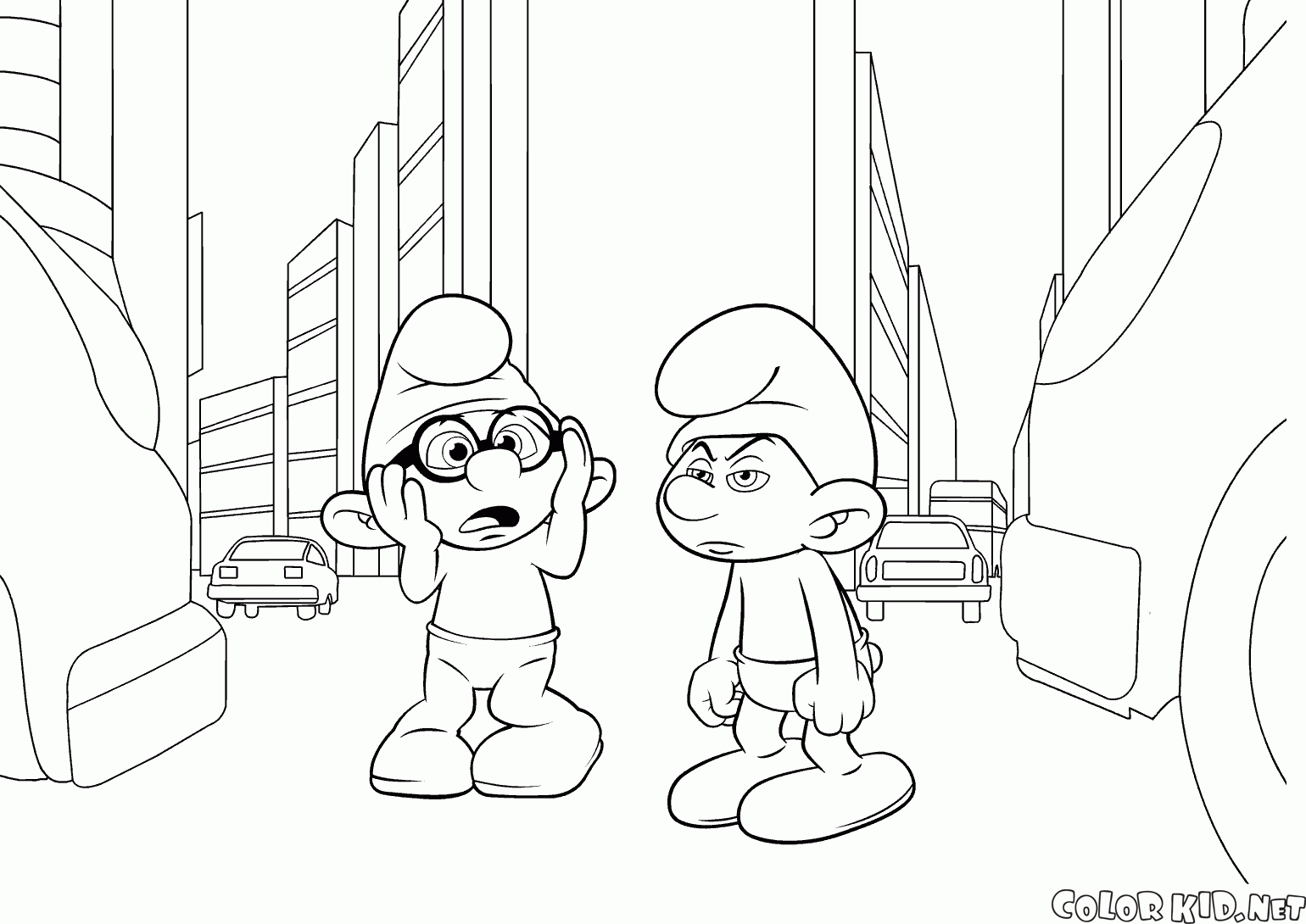 Coloriage - Schtroumpf à lunettes et Schtroumpf grognon