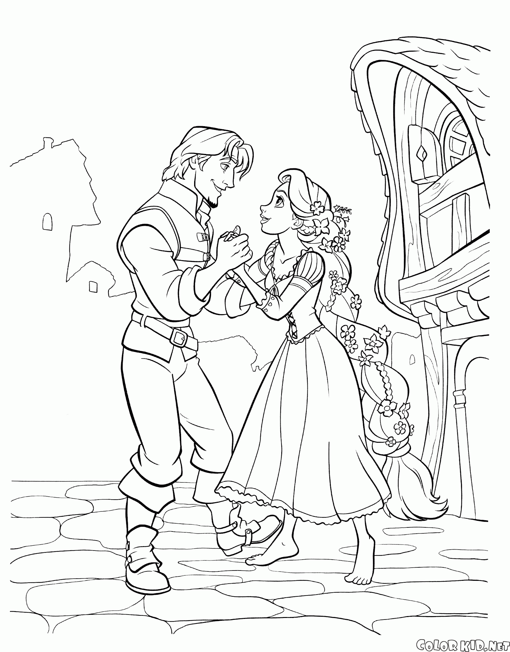Vous pouvez télécharger et imprimer les pages à colorier pour les enfants Réunion Flynn et Raiponce depuis notre site Web.