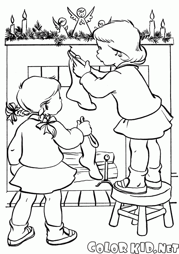 Coloriage - Les enfants accrochent bas