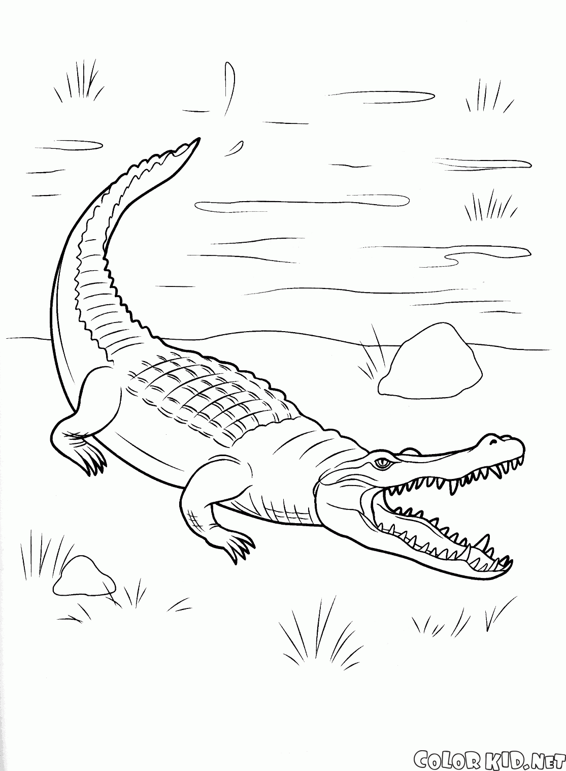 Coloriage - Crocodile est venu sur terre