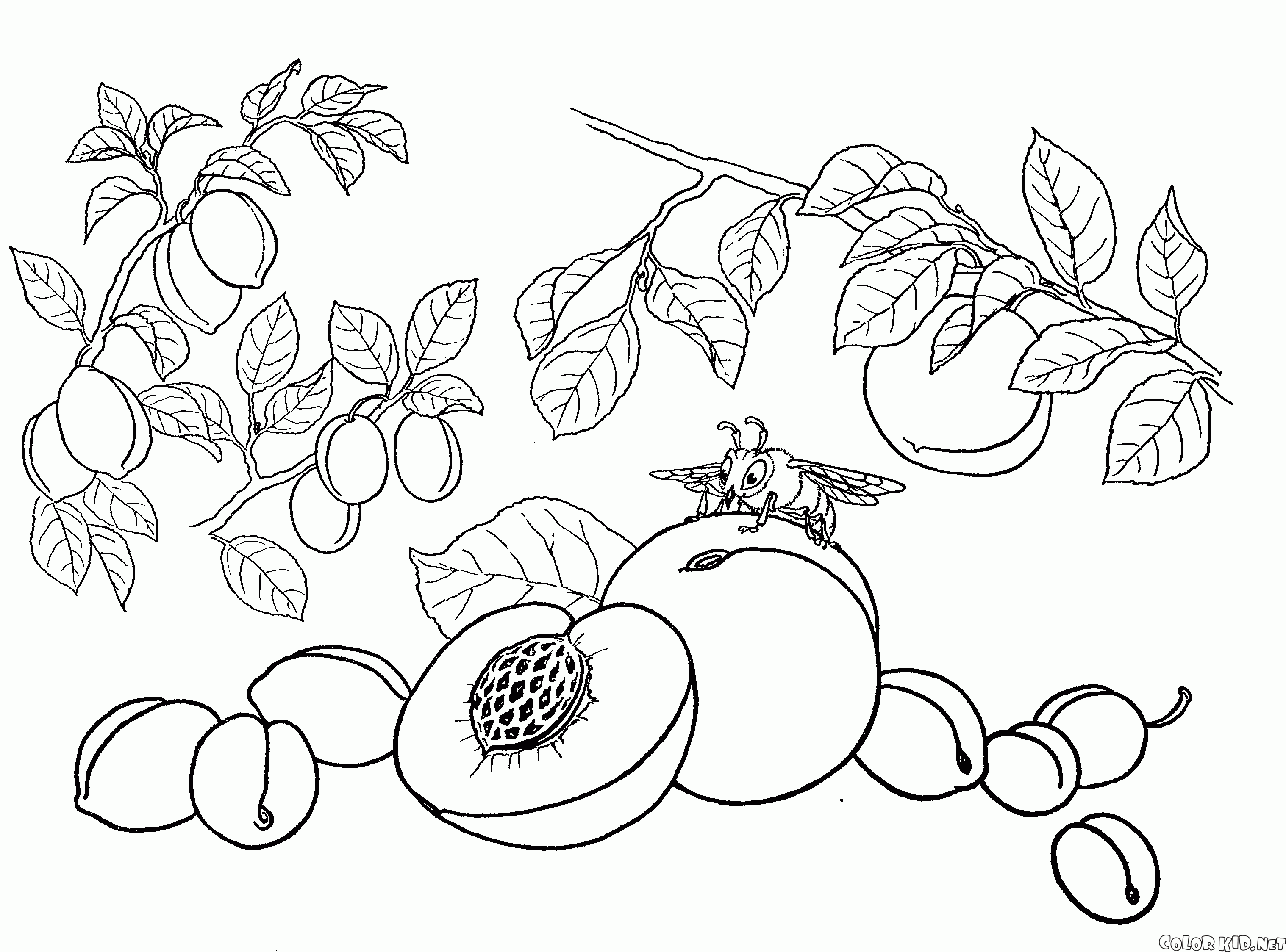 Coloriage - Pêche, abricot, prune