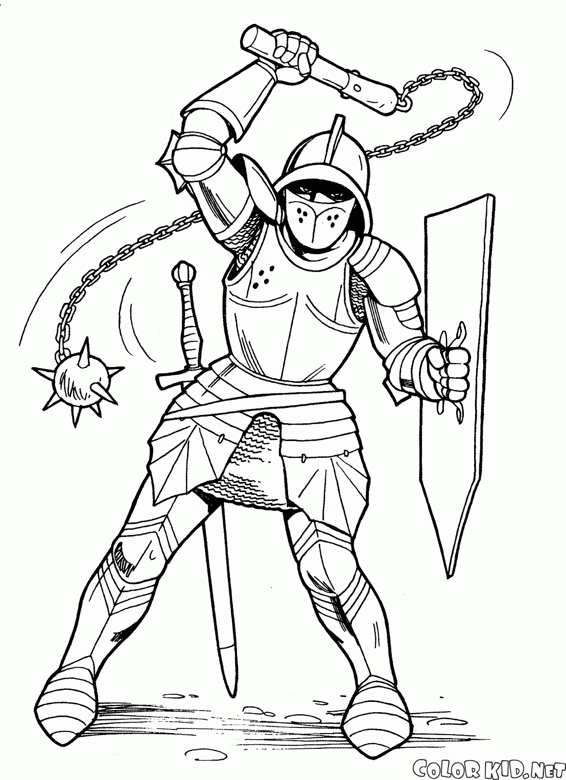 Coloriage - Chevalier avec Mace