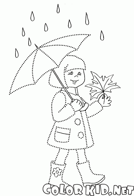Le garçon se promène sous la pluie