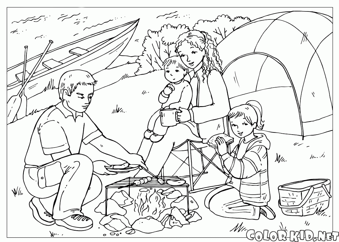 Famille au feu de camp