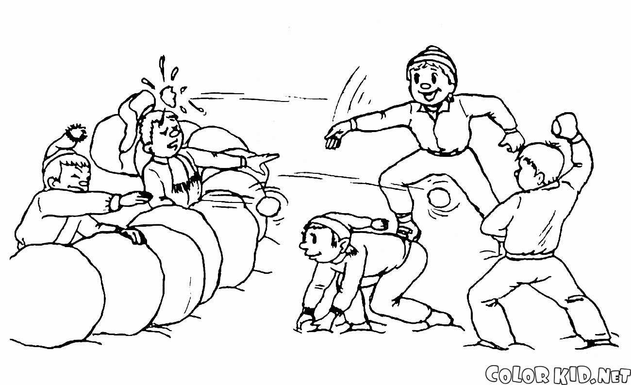 Vous pouvez télécharger et imprimer les pages à colorier pour les enfants Combat de neige depuis notre site Web.
