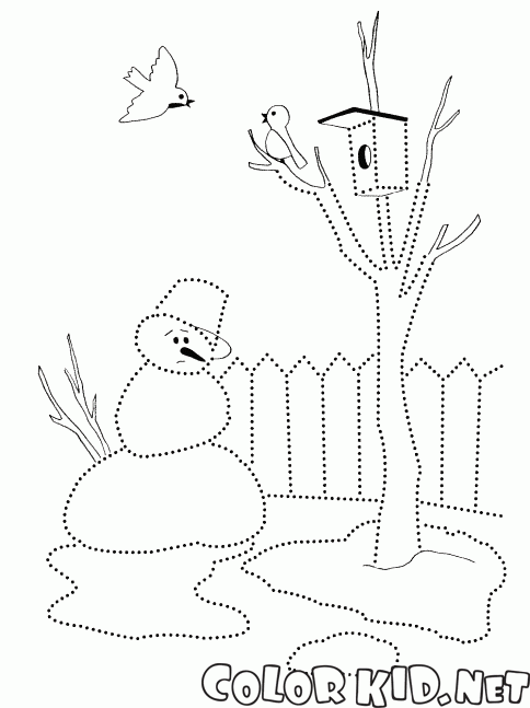 Coloriage - Bonhomme de neige presque fondu